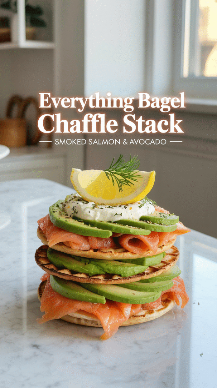 Craving an everything bagel without the carbs? This keto chaffle stack brings all the brunch vibes: crispy “bagel” chaffles layered with lemon-dill cream cheese, silky smoked salmon, and creamy avocado. It’s grain-free, satisfying, and ready in about 10 minutes.