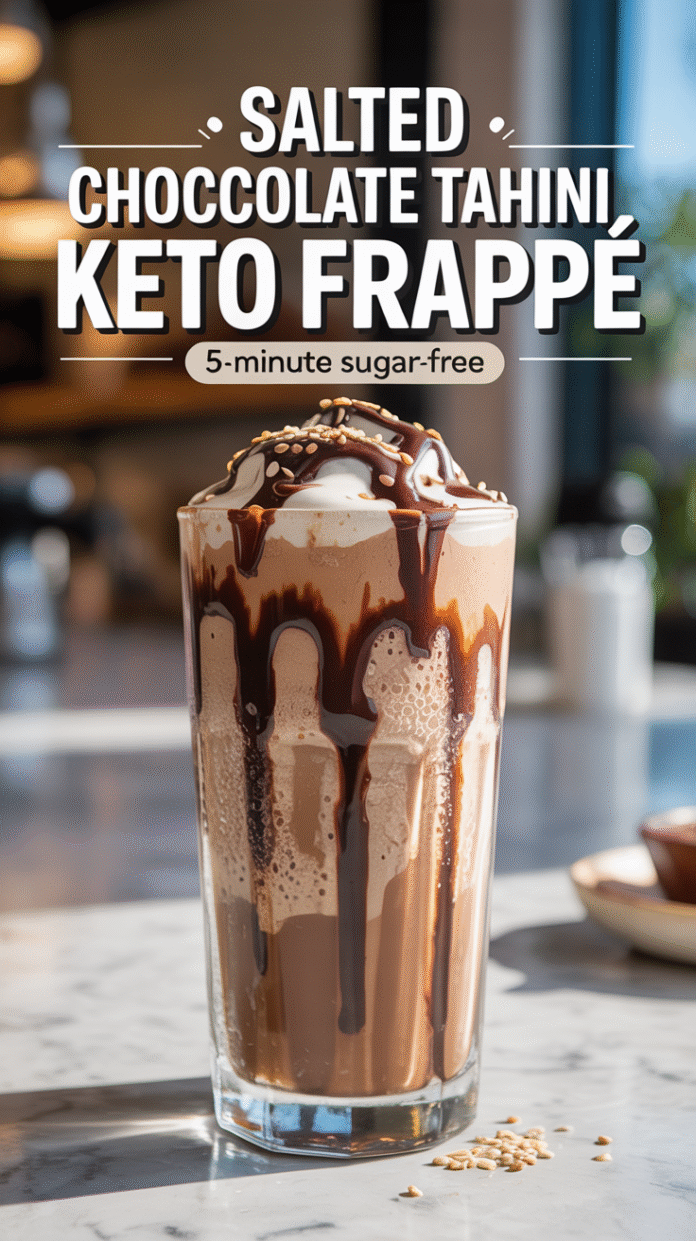 This Salted Chocolate Tahini Keto Frappé brings coffeehouse vibes to your kitchen in just 5 minutes. It’s silky, spoonable, and sugar-free, blending nutty tahini with rich cocoa for a satisfying low-carb treat.